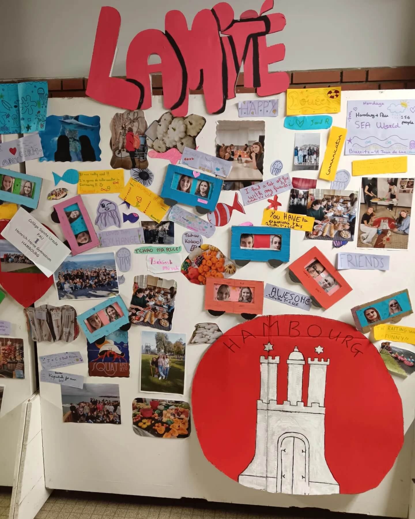 Après un petit déjeuner commun avec les correspondants, la matinée s’est déroulée autour de la conception d’une fresque de l’amitié, d’une visite du collège, de la participation à quelques cours. Un après-midi libre était proposé pour tous.